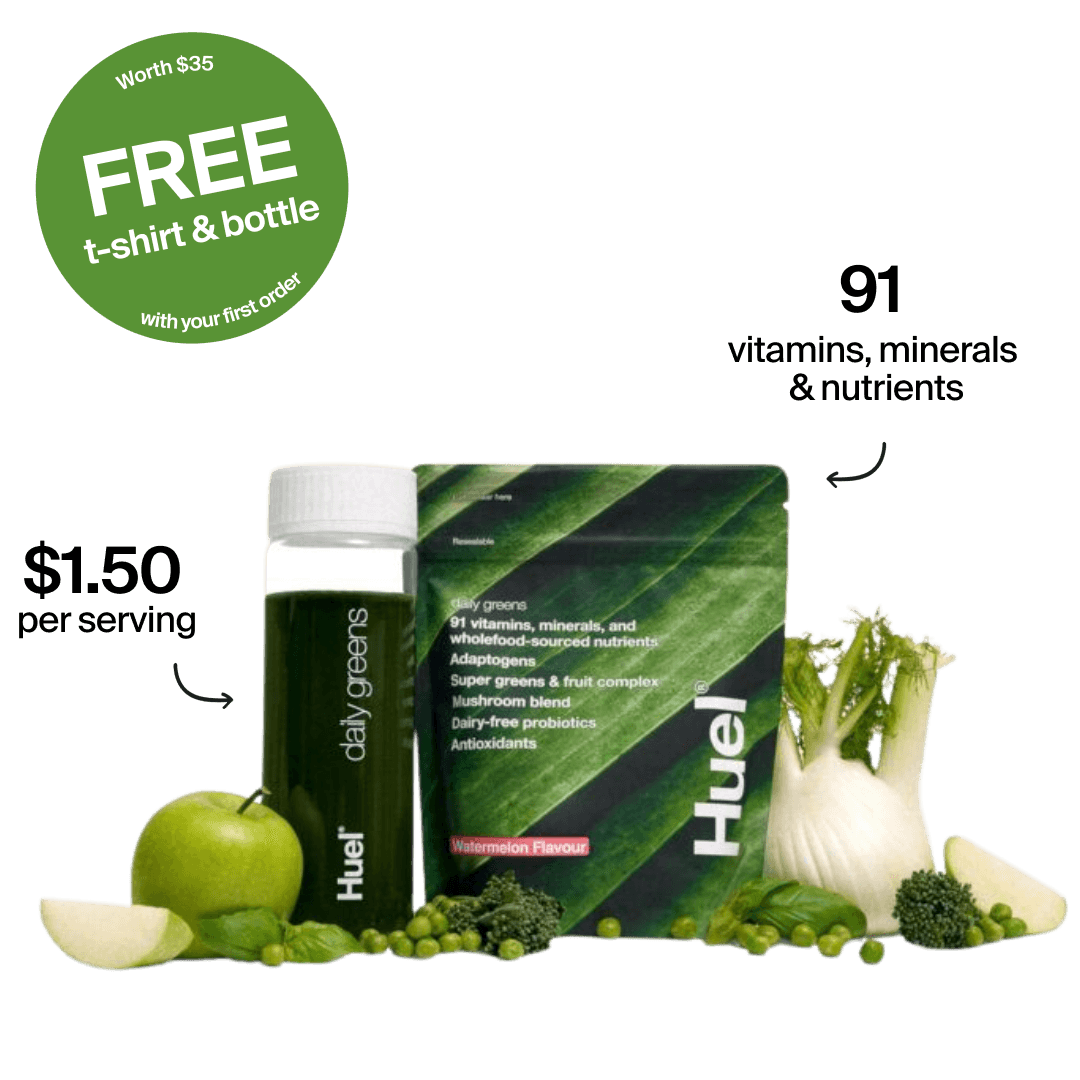No need to reach for that second (or third) coffee. Huel Daily Greens delivers vitamins B6, B12, and iron that support energy metabolism and cognitive function, giving you smooth, sustained energy, without relying on more caffeine.